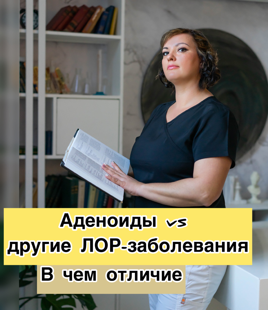 Гипертрофия глоточной миндалины(аденоиды)- это патологическое разрастание лимфоидной ткани, вследствие воздействия ряда внешних факторов, что может вызывать различные симптомы схожие с другими ЛОР-заболеваниями. Важно уметь различать их, чтобы своевременно обратиться за помощью к специалисту. Особенности аденоидов Аденоиды чаще всего беспокоят детей в возрасте 3-7 лет, но могут встречаться и в других возрастных группах. Их увеличение может привести к нарушению дыхания и другим проблемам. Влияние на здоровье Симптомы аденоидов VS другие ЛОР- заболевания Аденоиды -заложенность носа: постоянная, не зависит от сезона, сосудосуживающие не приносят облегчения -выделения из носа: слизистые, умеренные -храп: характерен, иногда с остановками дыхания во сне. -температура: нормальная или слегка повышена. -кашель: часто. Аллергический ринит -заложенность носа: периодическая, усиливается при контакте с аллергеном. -выделения: прозрачные,водянистые. -храп: редко. -температура: нормальная. -кашель