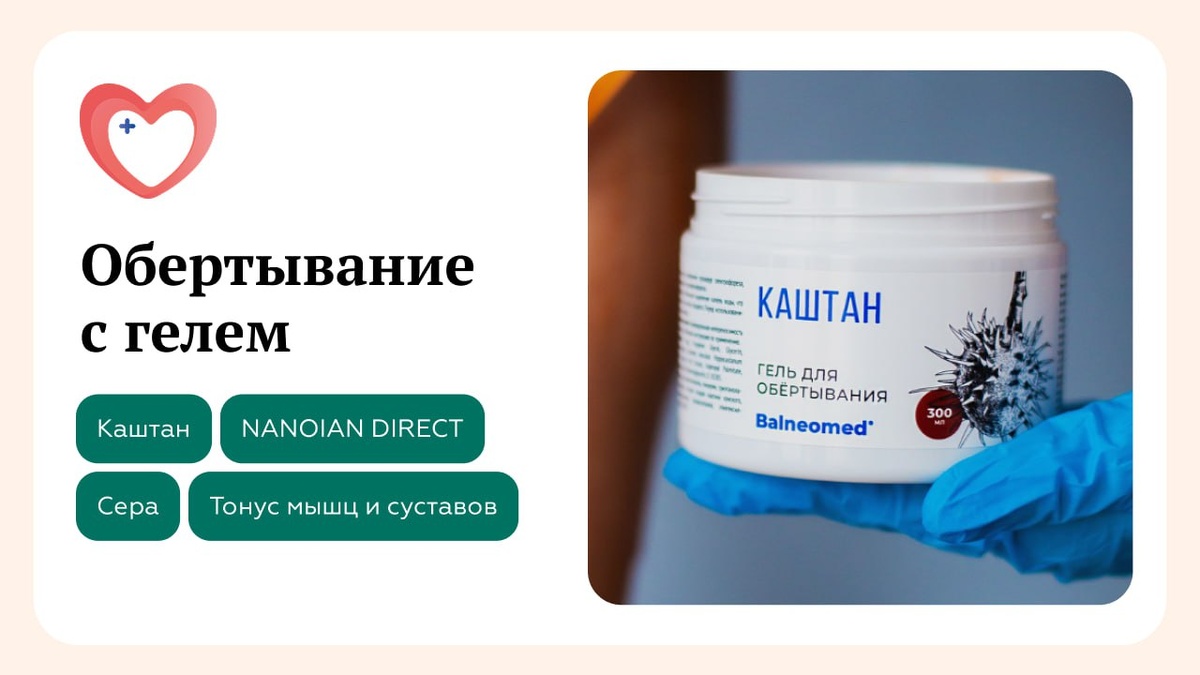 Обертывание с гелем в санатории «Переделкино» 🧖🏻♀️ Друзья, вы когда-нибудь мечтали о процедуре, которая одновременно борется с «апельсиновой коркой», снимает отеки и дарит коже невероятную упругость? Сегодня не нужно мечтать — нужно делать профессиональные обертывания с целебными гелями! ✅ Обертывание с гелем «Каштан» Гель для обертывания «Каштан» — это средство против варикозного расширения вен нижних конечностей. Курс применения помогает снизить боли и отечность ног, а также может быть эффективен при ушибах, гематомах, растяжениях связок, вывихах. ✅ Обертывания с гелем «NANOIAN DIRECT» Гель для обертывания «NANOIANDIRECT» — это продукт с противовоспалительными свойствами на основе нафталанской нефти. ✅ Обертывания с гелем «Сера» Гель для обертывания «Сера» обладает двойным действием – помогает противостоять воспалению в суставах и борется с болезнями кожи. ✅ Обертывания с гелем «Тонус мышц и суставов» Гель для обертывания «Тонус мышщ и суставов» — это средство против бол