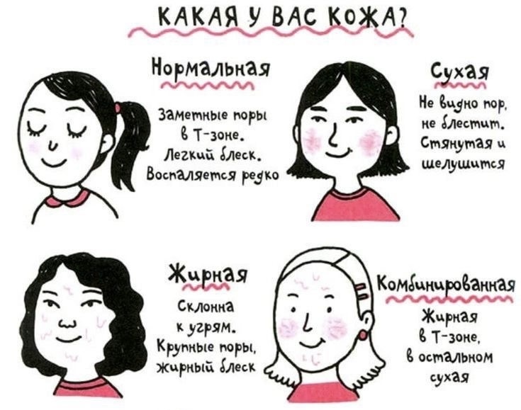 Вы когда-нибудь покупали новую уходовую баночку, а она делала только хуже: еще сильнее жирнила лицо или наоборот стягивала? Виноват не всегда продукт. Возможно, вы просто не знаете свой тип кожи лица. Разберем 4 основных типа: - Нормальная. Название говорит само за себя, вы счастливый обладатель «идеальной» кожи. В этом случае вы не встретитесь ни с жирным блеском, ни с шелушениями. Воспаления возникают редко, а поры практически не видны - Жирная. Уже к середине дня ваша кожа приобретает характерный блеск, поры расширены, а воспаления беспокоят чаще, чем хотелось бы. Сразу хочу вас чуть подбодрить - такая кожа медленнее стареет😉 - Сухая. Шелушения, чувство стянутости(особенно после умывания), очень узкие поры - верные признаки сухой кожи. К тому же, обладатели этого типа часто сталкиваются с раздражением. - Комбинированная. Самый распространенный тип. Жирный блеск и расширенные поры только на Т-зоне(лоб, нос, подбородок). При этом щеки и зона под глазами могут быть как сухими,