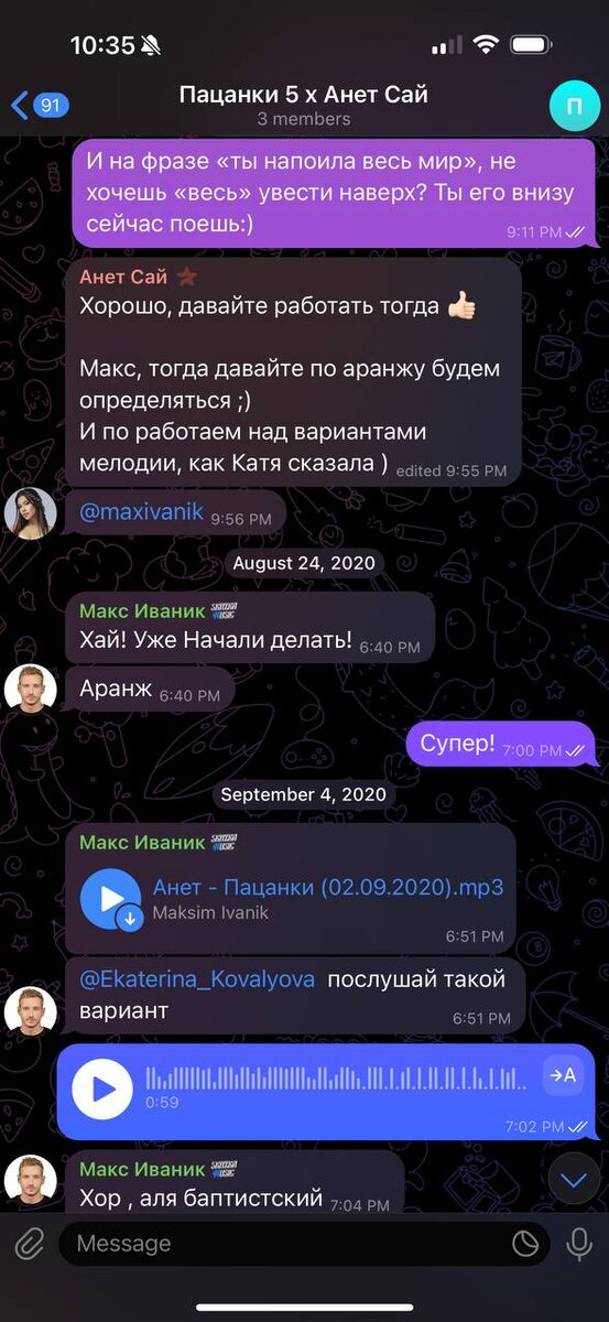 А вот так у нас шла работа и выбор названия)) вы могли увидеть этот трек совершенно под другим тайтлом🤣🤣🤣 Ну и песня запустила Анет в космос🤍