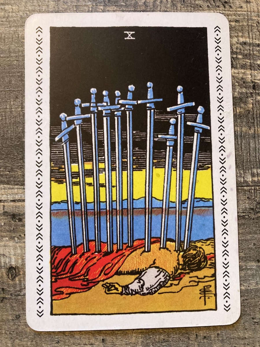 Карта Дня - Десятка Мечей "Ну всё, бегите, ребята, тушите свет — у нас тут полный апокалипсис… но, подожди, это только начало!" Десятка Мечей — карта завершения, картина, где наконец заканчивается долгий период испытаний и страданий. Можно представить себя супергероем, который только что сбросил тяжелые цепи проблем и теперь стоит на пороге новой жизни. Да, момент может быть болезненным, но, как говорится, после ночи всегда наступает рассвет… Совет карты: не нужно бояться заканчивать то, что больше не приносит пользы. Пускай даже кажется, что всё разваливается, помни - это просто подготовка к чему-то новому и лучшему. Ты не один на этом поле битвы — поддержка есть, и она рядом, даже если сейчас она прячется в тени. Десятка Мечей — это твой сигнал «перезагрузки». Сегодня твой день для сброса старого багажа и активации новой, крутой версии себя!✨
