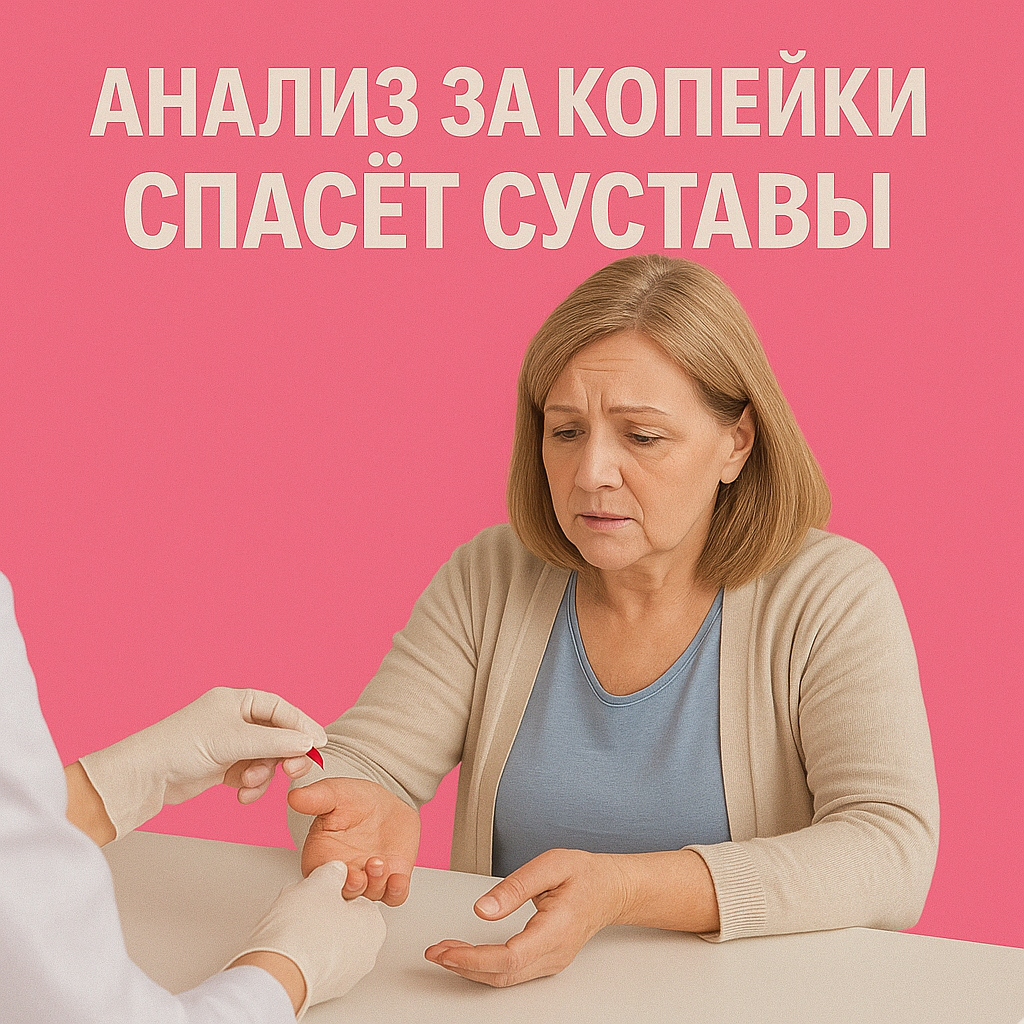 Хрустят колени и болят пальцы? Один простой анализ за копейки покажет, разрушаются ли суставы. Я проверила — результат удивил Мы привыкли думать, что суставы начинают болеть внезапно: сегодня всё хорошо, а завтра хруст, скованность и боль. Но на самом деле разрушение начинается задолго до симптомов. Врач на приёме сказал мне удивительную вещь: «Есть простой анализ, который за копейки покажет, в порядке ли ваши суставы. И лучше сделать его заранее, пока не поздно». Эта фраза зацепила меня. Делюсь, что узнала и почему теперь советую этот анализ каждой подруге. Признаки бывают крошечные: Мы списываем это на возраст, усталость или даже лишний вес. Но правда в том, что это первые сигналы разрушения хрящей. Речь идёт об обычном анализе крови на С-реактивный белок (СРБ). СРБ показывает уровень воспаления в организме. Если он повышен, значит, где-то уже идёт процесс разрушения — в том числе в суставах. Цена? В частной лаборатории он стоит от 200 до 400 рублей. В поликлинике можно сдать беспла