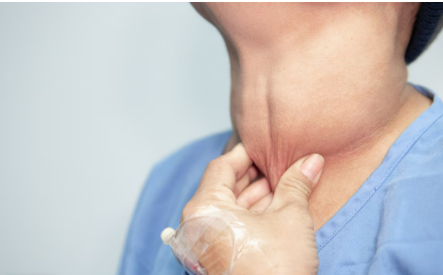 Женщина с увеличенной многоузловой щитовидной железой ожидает операции в больнице. Такие образования свидетельствуют о том, что дисфункция щитовидной железы может привести к нарушению выработки гормонов и обмена веществ, а также к проблемам с сердцем и даже мозгом, если не лечить заболевание.