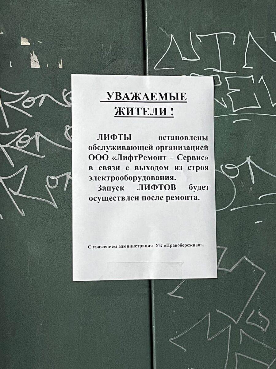 В Красноярске мужчина скончался после трех недель подъема на 9-й этаж без лифтов 📰 Трагический инцидент произошел в доме №60 на улице Щорса, где из-за отключенных лифтов пожилой мужчина с травмой ноги был вынужден три недели подниматься на костылях на девятый этаж. Тело красноярца нашли накануне. Тело Фёдора Ивановича обнаружили в его квартире накануне. По словам соседей, мужчина страдал от последствий старого перелома, полученного на стройке. После отключения лифтов в доме ему пришлось пользоваться костылями, чтобы преодолевать 9 этажей. Подъемы давались с большим трудом — незадолго до смерти к нему дважды вызывали скорую помощь. Директор УК утверждает, что жители дома №60 должны 2,8 млн рублей, дома №62 — 1,5 млн, дома №66 — 1,6 млн. Однако жители заявляют, что не платят сознательно из-за невыполнения УК обязанностей: не убирается грязь, не вывозится мусор, не моются подъезды. 😡 Ситуация с УК «Правобережная» и УК «Красноярская» демонстрирует полную недееспособность администраци
