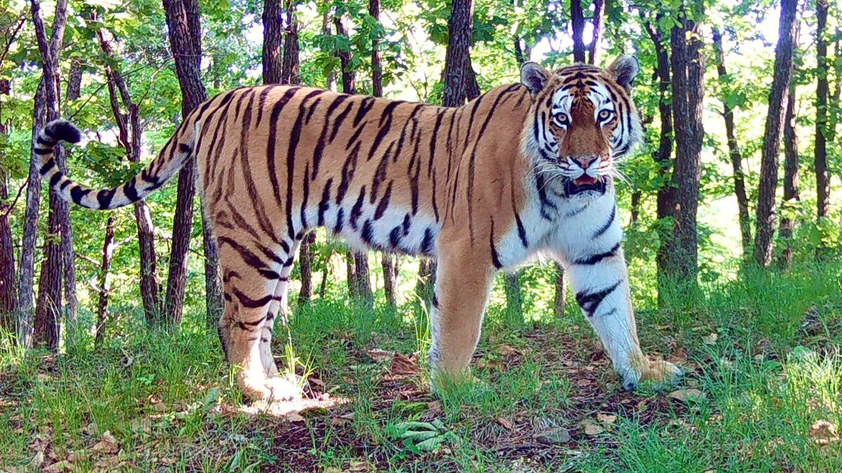 Камера всё это время снимала?! 😦 Такая фраза будто читается по морде амурского тигра. Никаких непристойных действий полосатый не совершал, поэтому переживать ему незачем, наверное. На «Земле леопарда» около 450 скрытых лесных камер, которые фиксируют интересные моменты из жизни диких животных, а иногда снять удаётся и такие забавные кадры. Кстати, амурский тигр занимает самую северную часть ареала вида и является самым крупным представителем из всех подвидов тигров. 🐆 Здесь «Земля леопарда»