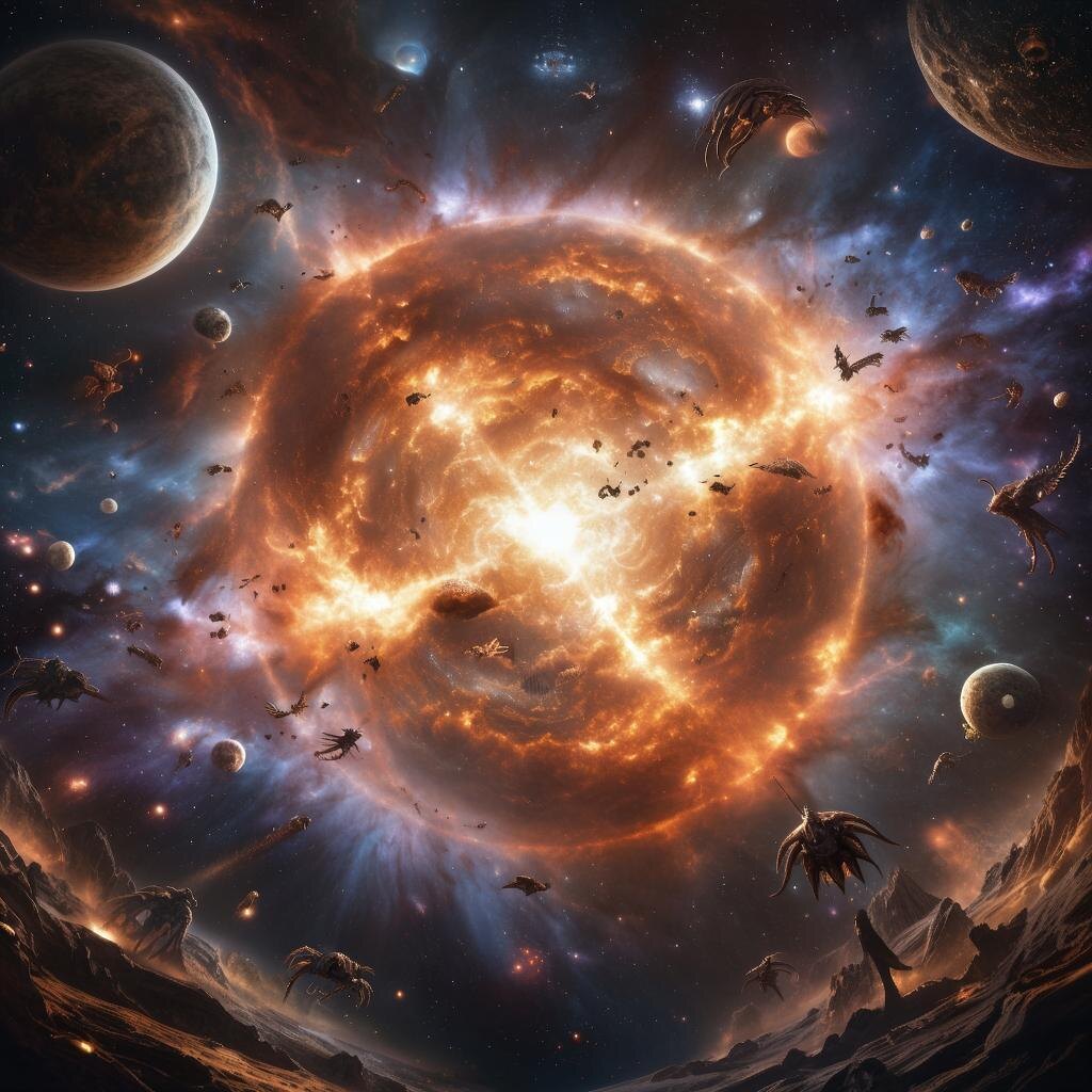 Пространство исказилось волнами гравитации, словно ткань реальности затрещала под давлением невидимой силы. Звезда по имени Ригель, находившаяся в созвездии Ориона, вдруг начала стремительно сжиматься. Внутри нее начали происходить процессы, неподвластные человеческому разуму. Это была точка невозврата, миг перед взрывом сверхновой. Но внутри звезды было нечто большее, чем просто плазма и атомы. Там обитали существа, чьи тела состояли из энергии и света. Они называли себя светоносцами и жили миллионы лет, наблюдая за развитием вселенной. Светоносцы знали, что звезда скоро погибнет, но они также понимали, что это лишь начало нового цикла. Их жизнь зависела от взрыва сверхновой, ведь именно в этот момент рождались новые элементы, необходимые для существования всей материи. Один из светоносцев, звавшийся Эрионом, решил отправиться внутрь ядра звезды, чтобы увидеть рождение новых миров своими глазами. Его тело пульсировало светом, отражаясь в стенах туннелей, созданных самим временем-пр