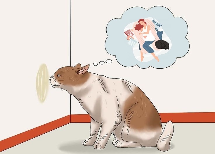 Питомец может начать метить квартиру, как правило, метки оставляют или мочёй или секретом параанальных желёз. Особенно на последних месяцах беременности, тем самым показывая, что территория, где появится младенец, находится под надёжной защитой и посторонним сюда лучше не соваться.