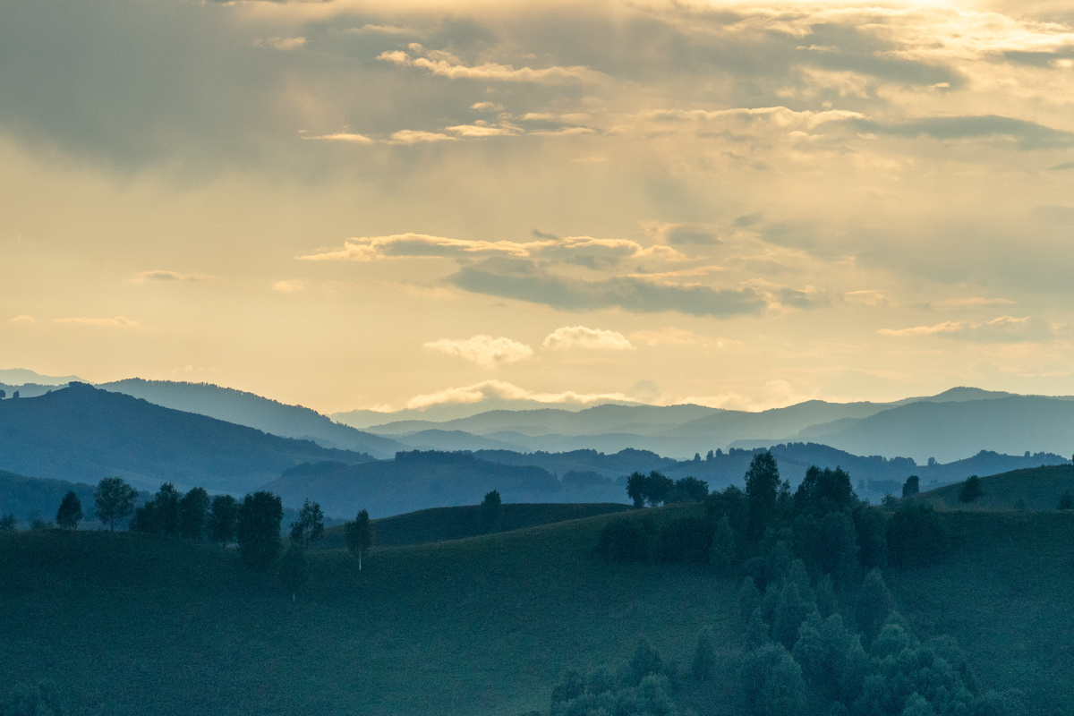 На следующий день нам предстояла дорога в Чемал, но на рассвете я решил съездить сфотографировать заснеженный Северо-Чуйский хребет. Погода была облачная, поэтому всю дорогу я переживал получиться ли что-то из моей затеи. Получилось: