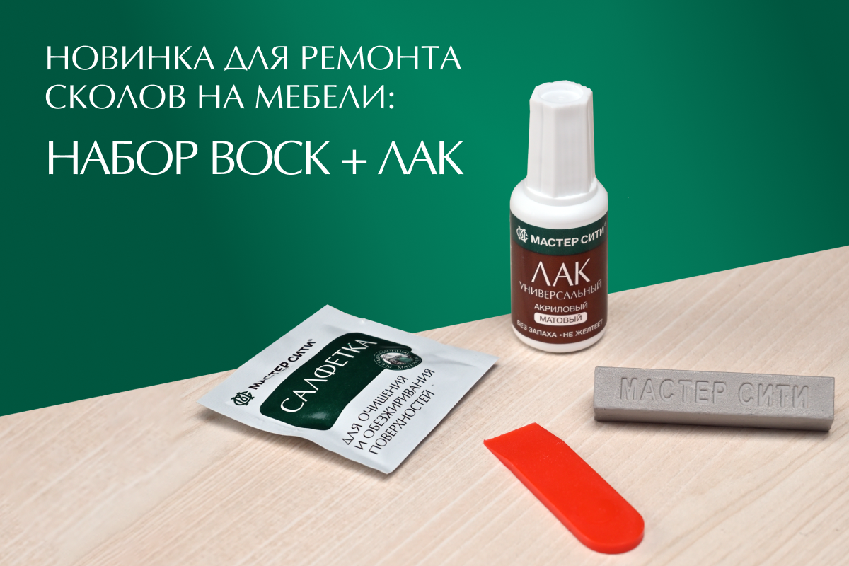 Для тех, кто хочет быстро и качественно восстановить внешний вид мебели, появился удобный и практичный набор от Мастер Сити. Он включает в себя два ключевых продукта: Мягкий мебельный воск и Универсальный акриловый матовый лак, а также всё необходимое для их применения. - Мягкий мебельный воск — используется для заполнения сколов, царапин и трещин на поверхностях, не подверженных интенсивной эксплуатации - Акриловый матовый лак — защищает отреставрированное место от влаги, грязи и истирания - Салфетка для обезжиривания — помогает подготовить поверхность к нанесению воска и лака - Шпатель — для равномерного нанесения и удаления излишков Набор представлен в палитре самых востребованных цветов, которые подходят к большинству современной мебели: 1. Подготовка поверхности - очистите место повреждения и обезжирьте его с помощью салфетки, входящей в набор 2. Нанесение воска - быстрыми уверенными движениями или вдавливанием заполните повреждение. Воск легко втирается в трещинки и сколы, не даё