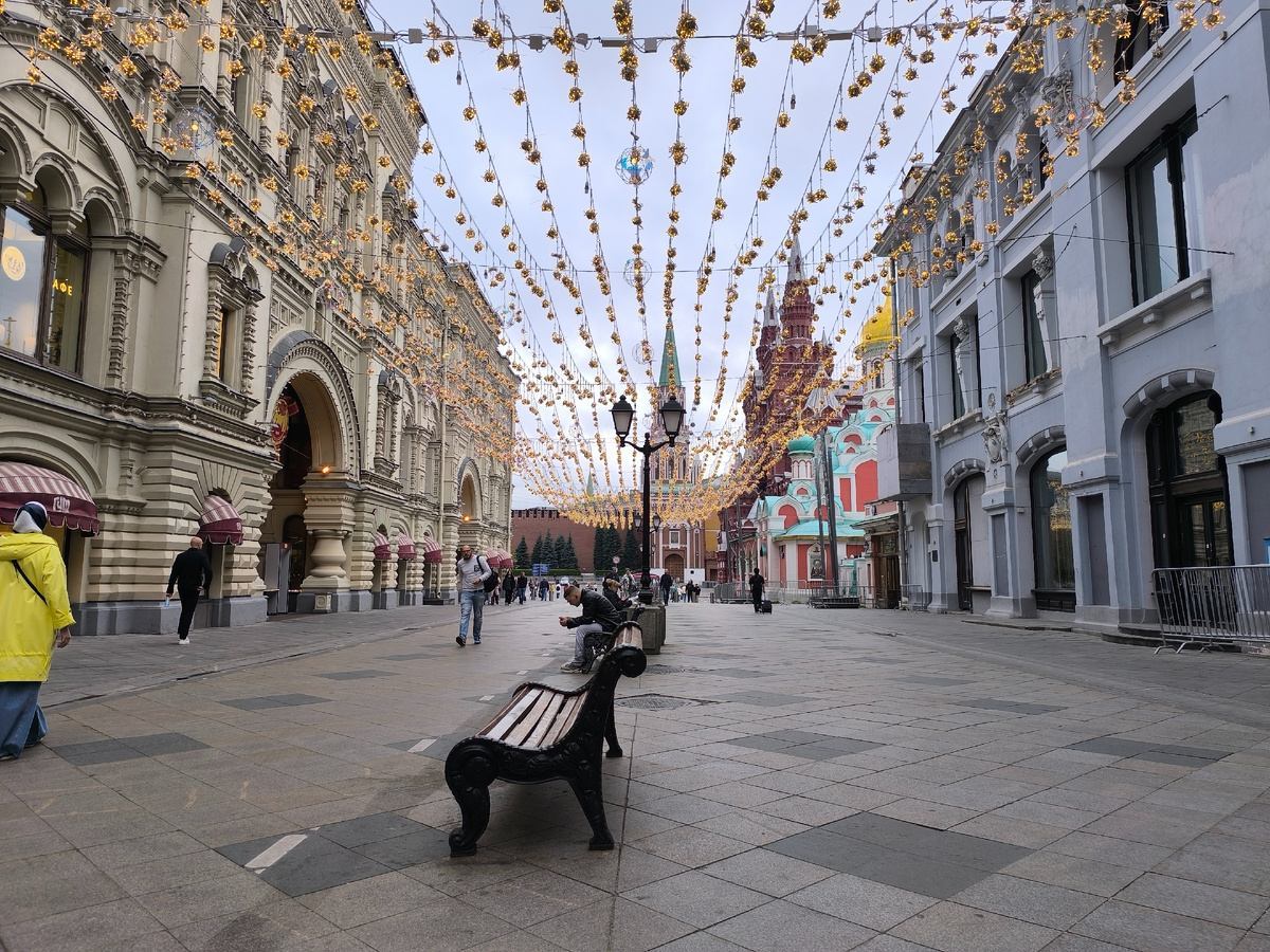 В обед закончила свои рабочие дела и поехала в ГУМ смотреть новое осеннее убранство. Погода сегодня по стать желанию зайти в тёплое, светлое и уютное место, спрятаться от накрапывающего дождика и прохладного ветерка. ГУМ как раз такое место.