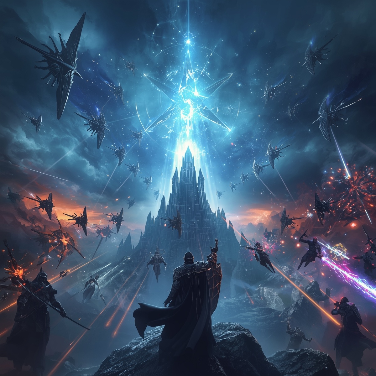 Началась битва, равной которой не видел мир. Корабли Пустотников атаковали волнами тёмной магии, но каждую атаку встречал отпор — свет источника, усиленный решимостью защитников.