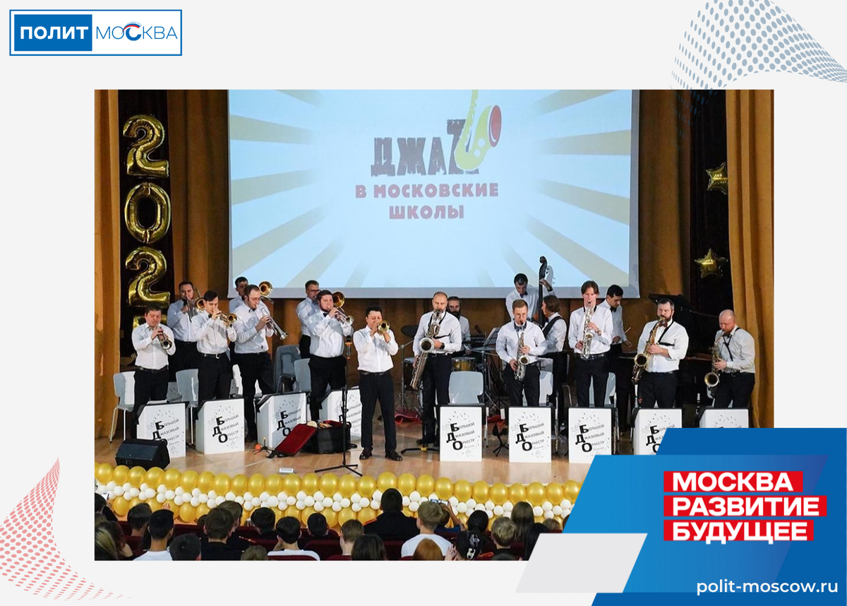 «Московское образование уделяет большое внимание разностороннему воспитанию детей, в том числе и эстетическому развитию. В прошлом году в столичных школах прошло 25 джазовых концертов с шедеврами мировой музыки, которые посетили свыше семи тысяч школьников. Учитывая большую популярность проекта, мы решили расширить его аудиторию в новом сезоне. Теперь услышать выступления Большого джазового оркестра под руководством Петра Востокова смогут не только старшеклассники, но и ученики средней школы, студенты колледжей и воспитанники центров допобразования. Мы хотим, чтобы как можно больше юных москвичей могли приобщиться к этому музыкальному жанру и познакомиться с творческими людьми», — рассказала заместитель Мэра Москвы по вопросам социального развития Анастасия Ракова.