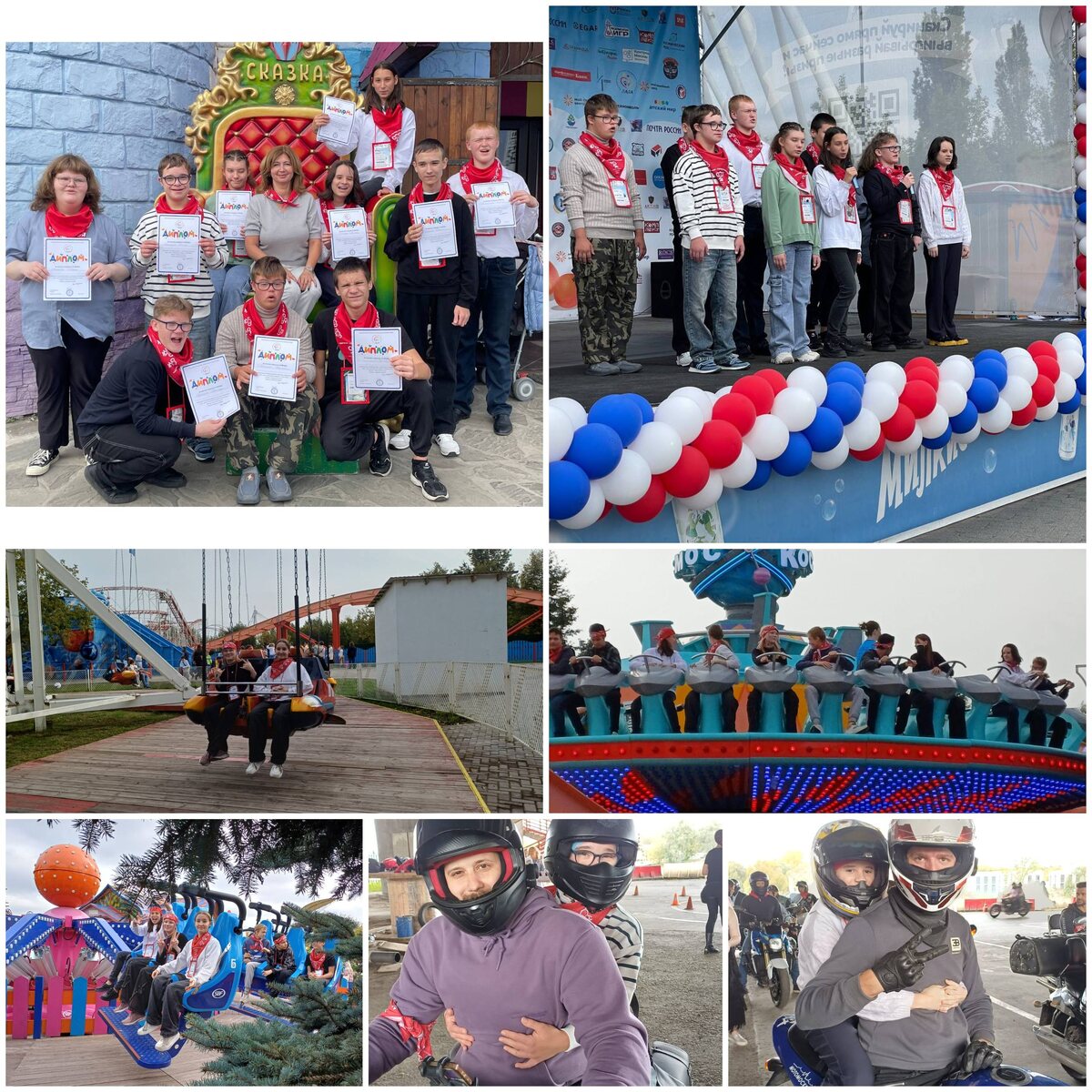 🏃Ученики 5А и 9А классов приняли участие в подвижных играх на «полосе препятствий», в баскетболе, городках, прыжках на батутах и в гонках на самокатах. Есть победители и призеры! 🏍️🏍️🏍️Байкеры катали детей на мотоциклах и угощали вкуснейшим мороженым! Было катание на аттракционах и сытный обед. И снова мороженое! Все участники получили памятные подарки!