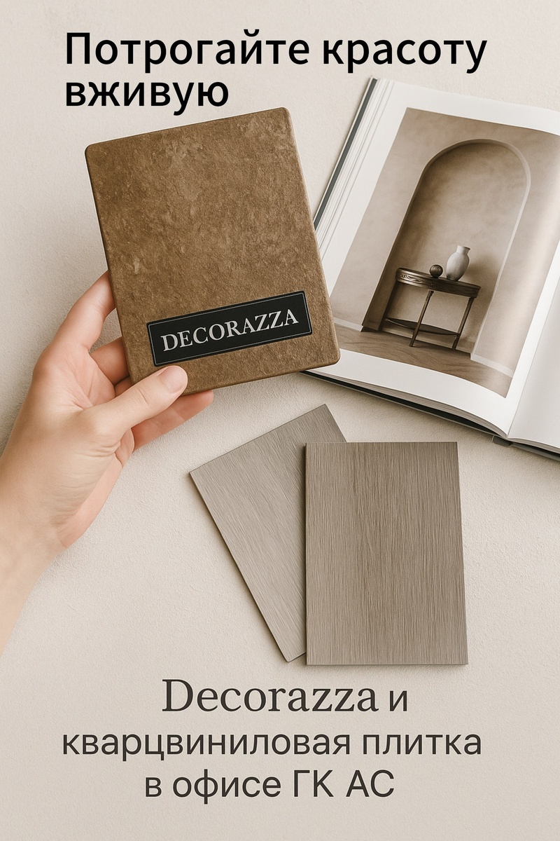 Потрогайте красоту вживую Когда Вы выбираете отделку, фото в интернете не передаёт настоящего впечатления. Только прикоснувшись к фактуре и увидев живой цвет, можно почувствовать стиль и понять, подходит ли покрытие именно Вам. В офисе Группы компаний АС Вас ждут: ✨ Каталоги и плашки с декоративными покрытиями Decorazza ✨ Живые образцы кварцвиниловой плитки — клеевой и замковой. Здесь всё можно потрогать, сравнить и сразу представить в интерьере Вашего дома. А ещё — наши цены ниже, чем в любом шоу-руме Хабаровска. 📍 Ждём Вас в офисе ГК АС. Приходите и убедитесь сами. г. Хабаровск, ул. Кулибина, 1 офис 203