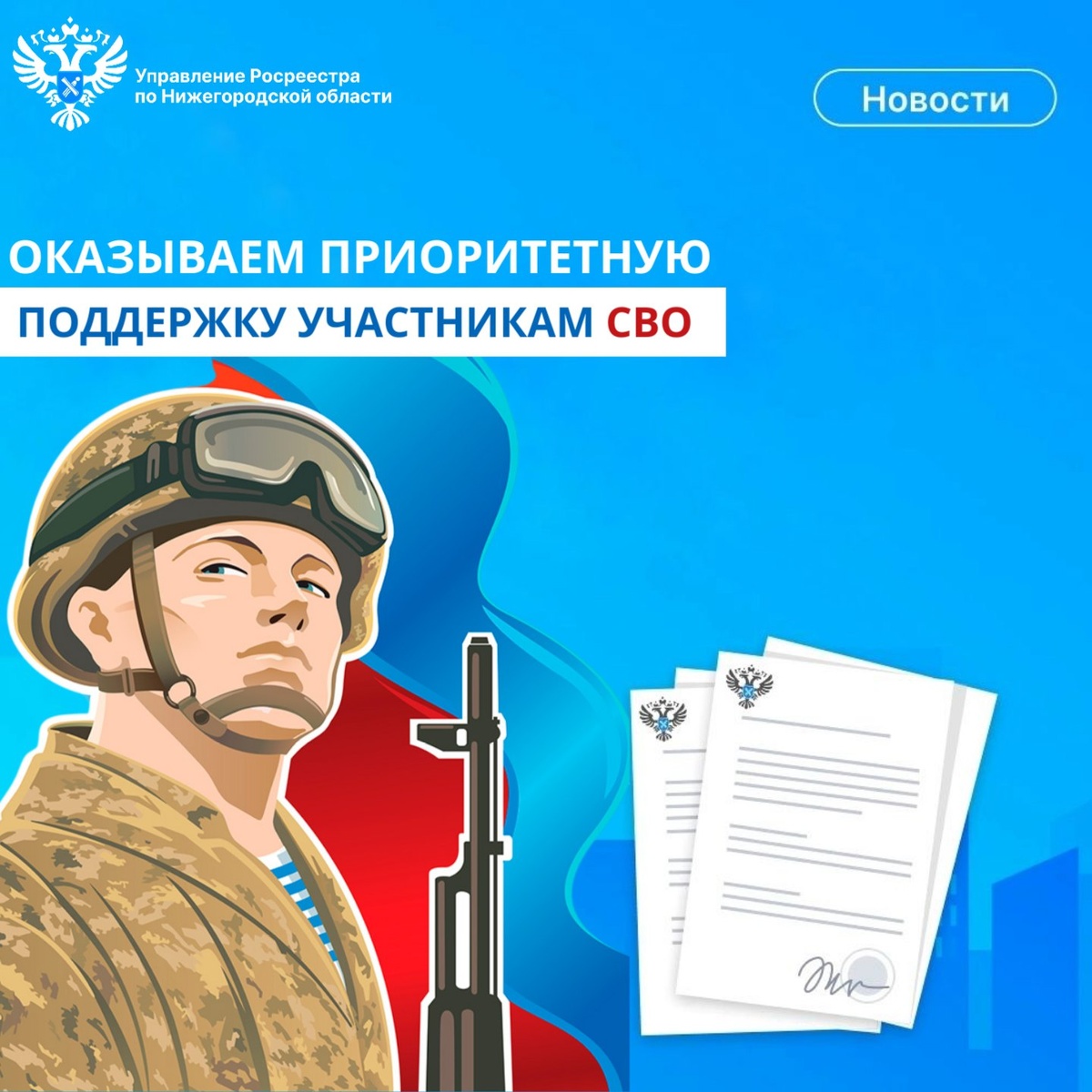 Управление Росреестра по Нижегородской области оказывает приоритетную поддержку участникам специальной военной операции (СВО) и их семьям в
