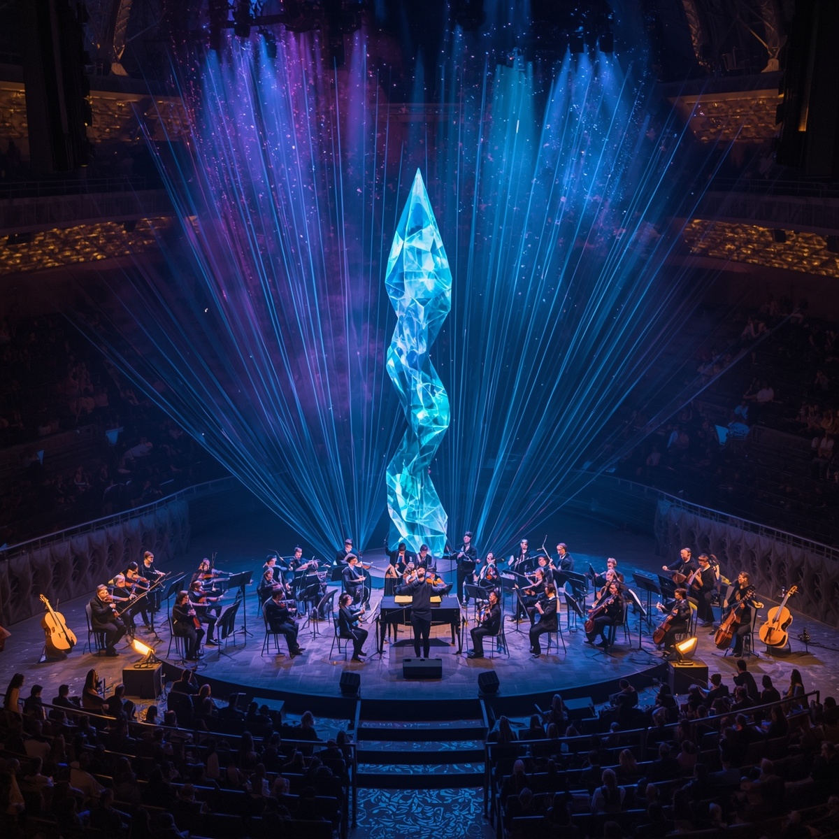 Результат превзошёл все ожидания. Амфитеатр наполнился не просто звуками — реальность вокруг начала танцевать под музыку магии. Воздух сверкал разными цветами. Цветы росли прямо из каменных ступеней, расцветая в такт мелодии. Фонтаны воды поднимались и опускались, создавая визуальный ритм.