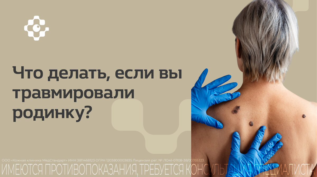 Повредить родинку проще, чем кажется: зацепили ногтем, сбрили вместе с волосками, натерла одежда или украшения. И при травме у многих возникает паника: а вдруг это спровоцирует рак кожи? Родинки (или невусы) появляются из-за скопления клеток – меланоцитов. Часть из них мы получаем «в наследство», другие возникают в течение жизни под действием солнца, гормональных изменений или просто индивидуальных особенностей организма. Большинство родинок совершенно безвредны и не требуют лечения. Но иногда в них могут происходить изменения, которые превращают обычный невус в злокачественную опухоль – меланому. Поэтому важно следить за родинками: их формой, цветом, размером. Сама по себе травма не превращает родинку в опухоль! Но повреждение может привести к воспалению, кровотечению или изменениям формы и роста – и вот это уже сигнал, что нужно показаться врачу. Что делать при травме родинки · Промойте место перекисью или хлоргексидином · Если идет кровь, аккуратно прижмите чистой салфеткой или би