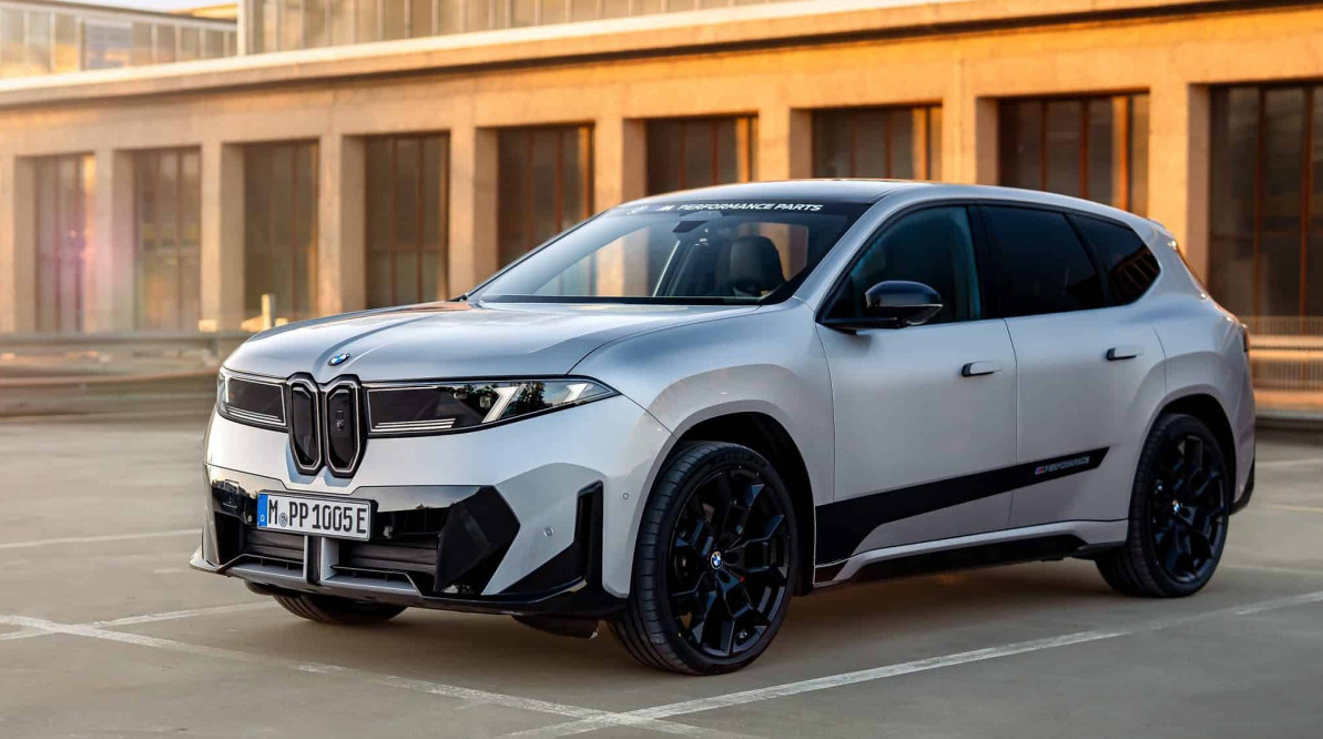 Новый BMW iX3 производит сильное впечатление благодаря деталям M Performance, которые придают электрокроссоверу более спортивный и динамичный облик. На старте продаж доступна версия iX3 50 xDrive, занимающая промежуточное место между базовой модификацией и будущими горячими M-производными. В Германии максимальная стоимость автомобиля с полным набором опций превышает 90 000 евро, а с индивидуальной окраской и комплектом M Performance Parts цена переваливает за шесть цифр. Экстерьер iX3 в штатном цветовом решении Space Silver выглядит довольно сдержанно, но элементы M Performance оживляют образ. Стильное аэродинамическое антикрыло на крыше выполнено в глянцевом чёрном цвете и гармонично сочетается с доработанным диффузором и новыми накладками на передних воздухозаборниках. Завершает внешний дизайн набор 22-дюймовых колёс 1054 M в матовом чёрном цвете — самые крупные, доступные для этой модели. Есть и альтернативный дизайн дисков 1053 с аэродинамической формой, уже с брэндом Individual. Ч
