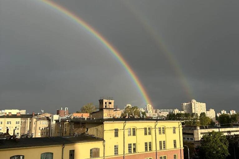 🌈 Несмотря на неутешительные погодные прогнозы, петербуржцев этим утром радовала двойная радуга