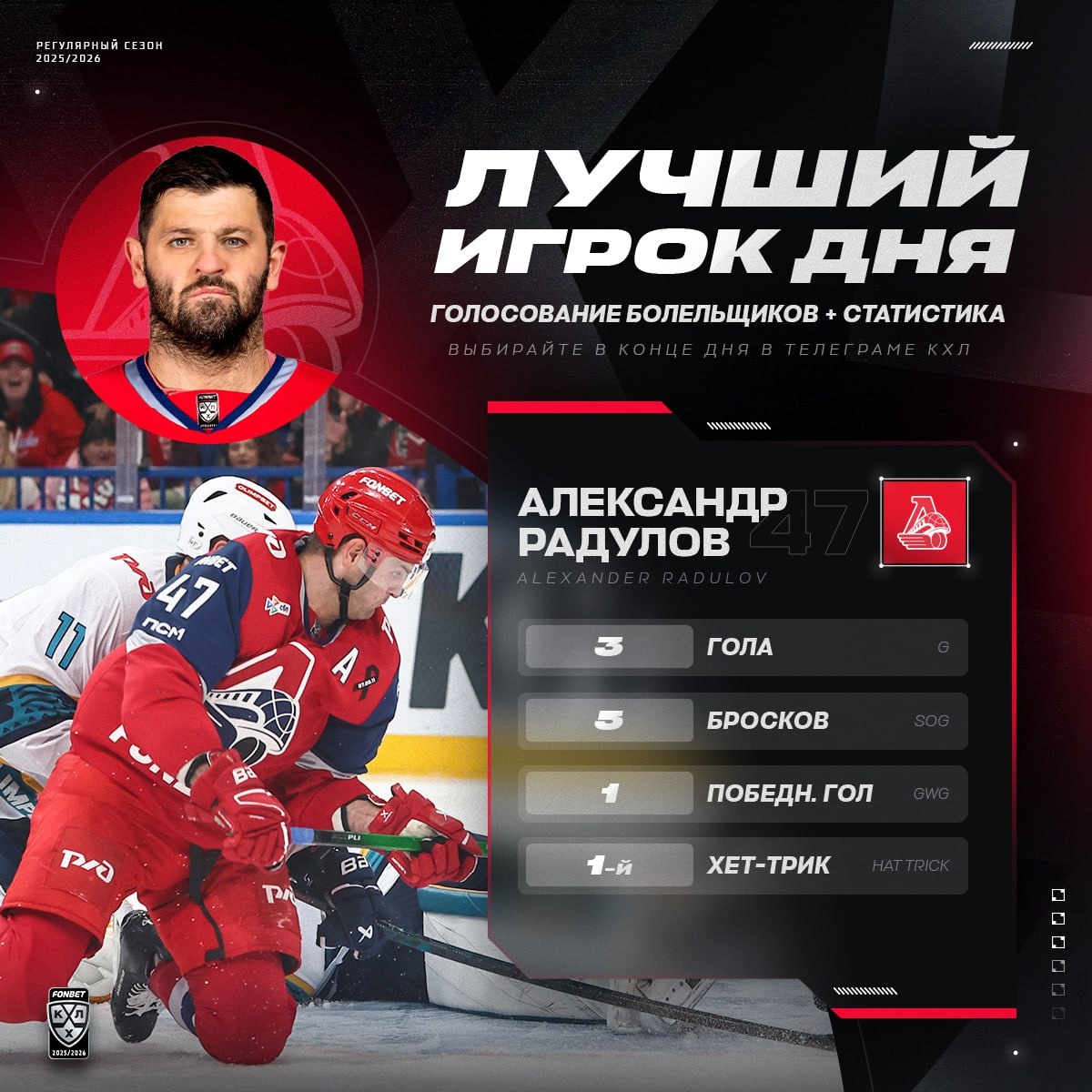 🚂 Александр Радулов оформил 5-й хет-трик в КХЛ, и никто не удивится, если будут еще