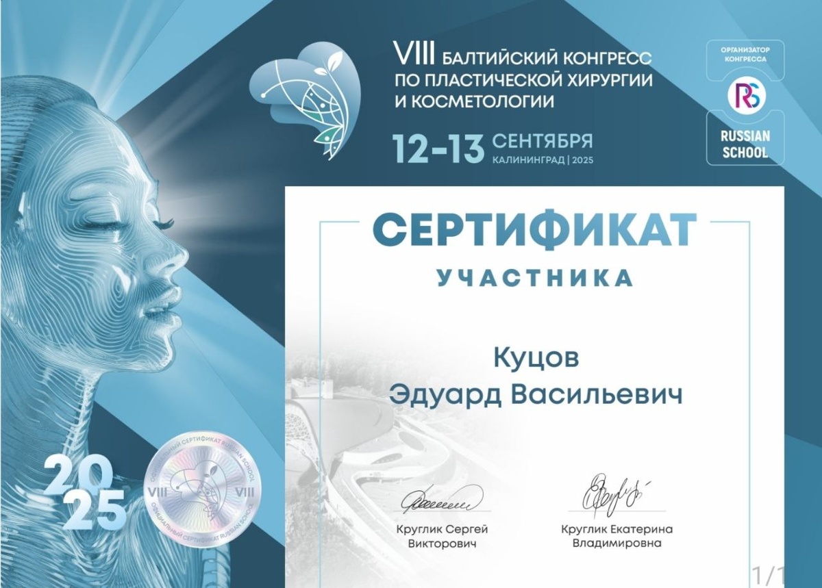 Когда после конгрессов приходят сертификаты об участии - всегда накрывает ностальгия. Особенно по Балтийскому конгрессу, на который я поехал не один, а с семьёй! Жена, дочь и Тёща! Только приятные воспоминания! Жду следующего года, чтобы вновь окунуться с незабываемую атмосферу передовой медицины и замечательной природы Калининградской области