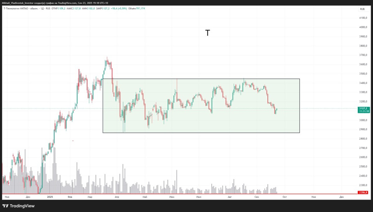 🏦 "Т-ТЕХНОЛОГИИ" ПРОДОЛЖАТ ПРИДЕРЖИВАТЬСЯ ПРАКТИКИ ВЫПЛАЧИВАТЬ ДИВИДЕНДЫ ЕЖЕКВАРТАЛЬНО "Т-ТЕХНОЛОГИИ" СОХРАНЯЮТ ПЛАНЫ НА 2025Г: РОСТ ПРИБЫЛИ НЕ МЕНЕЕ 40% И РЕНТАБЕЛЬНОСТЬ КАПИТАЛА СВЫШЕ 30% Т-БАНК ЗА 8 МЕСЯЦЕВ 2025Г СОКРАТИЛ ЧИСТУЮ ПРИБЫЛЬ ПО РСБУ НА 14% - ДО 33,3 МЛРД РУБ - БЛИЗНЮК Группа «Т-Технологии» раскрывает операционные результаты за август 2025 г. отчет Акции тем временем продолжают торговаться в боковике и копить топливо. Я считаю эту бумагу одной из самых интересных на нашем ранке #T #отчетность #дивиденд