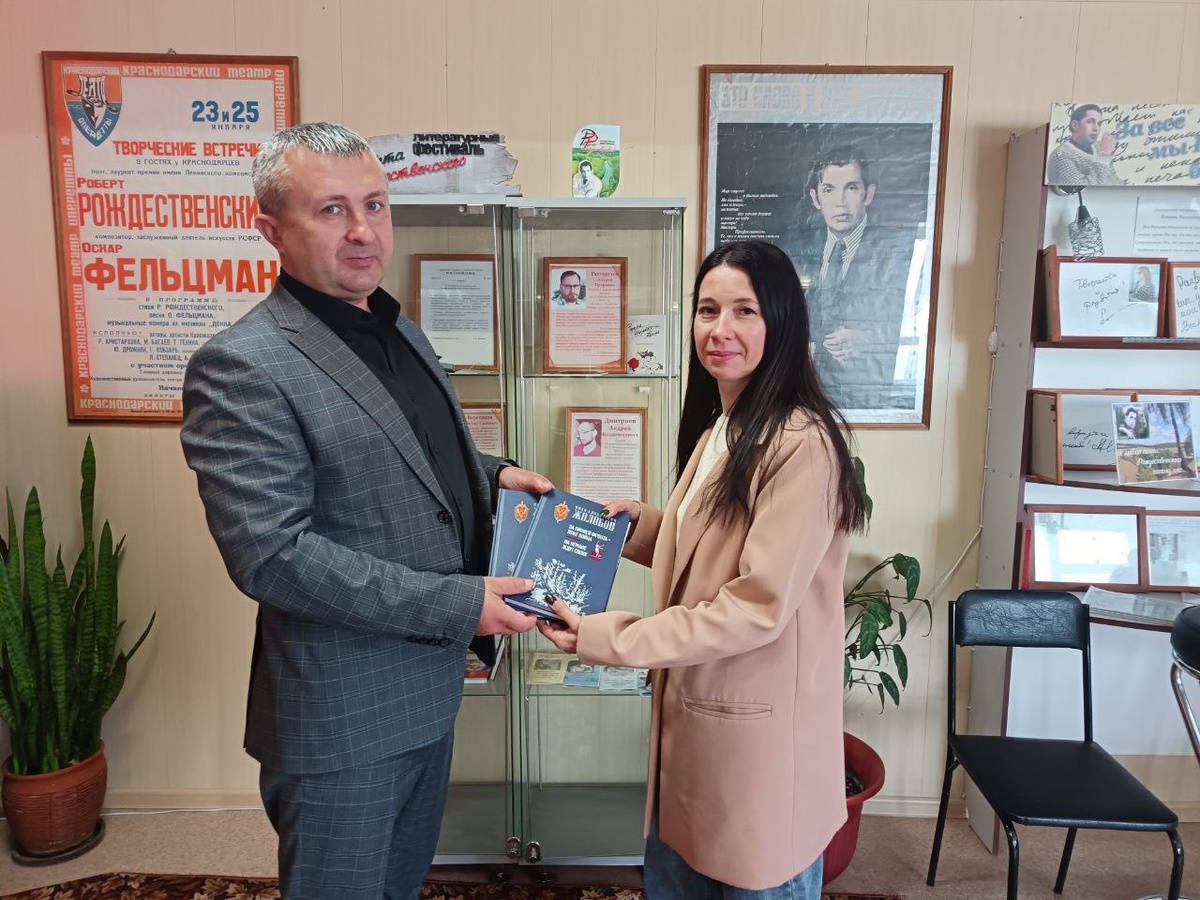 В районную библиотеку Р.Рождественского в с. Косиха в торжественной обстановке передан двухтомник Ивана Алексеевича Жолобова, почетного чекиста СССР, действовавшего в годы Великой Отечественной войны на территории Гомельской области Белоруссии в тылу противника. В своих воспоминаниях автор приводит много ярких эпизодов борьбы с немецко-фашистскими захватчиками. В мероприятии приняли участие председатель комитета по культуре и туризму Константин Синкин, заведующая библиотекой Анастасия Герчикова, редактор районной газеты "На земле косихинской" Ирина Ядрышникова и приглашенные гости. Передача двухтомника стала знаковым событием для Косихинского района. Это отличный подарок к 80-летию Великой Победы.Книга, рассказывающая о подвигах советских чекистов в тылу врага, займет достойное место в фонде библиотеки и станет ценным...