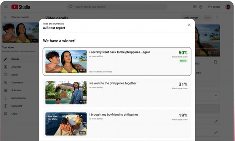 🔥 YouTube запускает A/B-тестирование НАЗВАНИЙ видео. НАЗВАНИЕ, ЗНАЧОК и ТЕМА видео играют ключевую роль в успехе публикуемых роликов. YouTube дал нам возможность проводить A/B-тестирование названий видеороликов, чтобы мы могли выявить наиболее эффективную концепцию заголовка. ❗️ПОМНИТЕ❗️ Не стоит использовать эту функцию бездумно. Нужно с осторожностью проводить A/B-тестирование названий.
