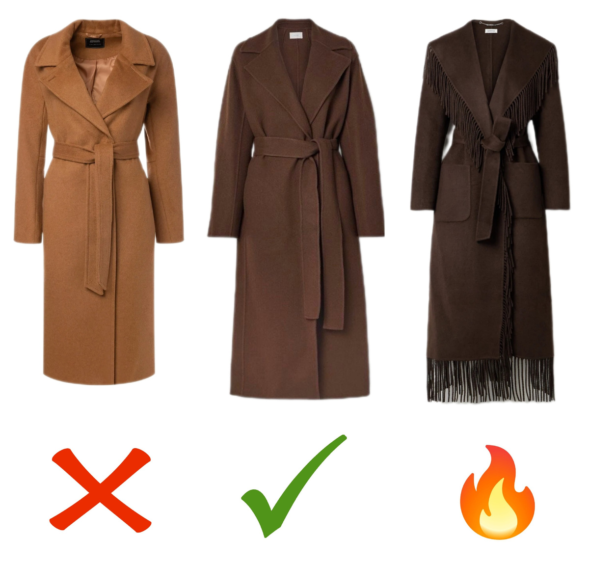Топ-5 старомодных, пятерка базовых и столько же трендовых моделей пальто и курток. Разбираем детали, на которые стоит обратить внимание, чтобы выглядеть актуально и не совершить модных ошибок. ❌Устарело: узкие пальто, как и любая верхняя одежда, давно ушли в прошлое. В этом году такие модели сложно сочетать с современными свободными худи, свитшотами и свитерами. ✅База: базовой остается модель сдержанного свободного кроя длины миди или макси. Под таким пальто легко поместится объемный второй слой, а образ получится минималистичным и элегантным. 🔥Тренд: в тренде осенью 2025 года остается стиль бохо. Замша, воланы, бахрома стали частью лаконичных пальто. Подборка пальто: ✔️Пальто-халат коричневое за 20000₽ ✔️Бежевое пальто за 14200₽ ✔️Черное пальто за 20800₽ ✔️Бирюзовое пальто за 14300₽ ✔️Бежевое пальто за 16700₽ ❌Устарело: короткие куцые джинсовки в 2025 году выглядят старомодно. Создать модный образ с такой курткой не получится. Хотя стилизовать узкую джинсовку можно в многослойн