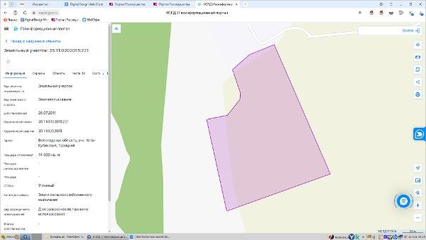 Название: Земельный участок, площадью 74 000 кв.м., кадастровый номер 35:11:0202015:221, расположенный по адресу: Вологодская область