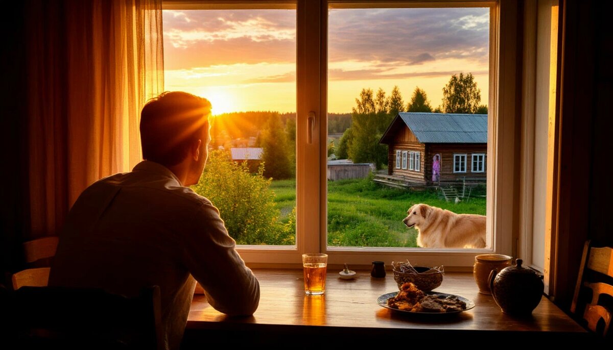 Солнце медленно садилось за пригорок, его лучи отражались в прозрачном ручейке. Воздух начал остывать, и Григорий почувствовал, как теплый дневной воздух сменяется свежим вечерним. Эта легкая прохлада была как глоток прохладного молока после плотного обеда.