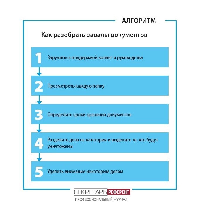 Что делать, если, придя на новое место работы, вы не нашли упорядоченного архива, а обнаружили склад документов, сваленных в дальней темной комнате? В этом случае рекомендуем действовать в соответствии с Алгоритмом.