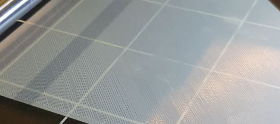 В прошлых сериях (тут и тут), я выяснил корневую причину неисправности принтера. Им оказалось размотанное в щи сопло, судя по всему стесанное о стол для печати из-за неверной калибровки стола. После замены результат однозначно стал радовать глаз, так что я решил провести более тонкую калибровку стола и посмотреть, что же из этого выйдет. Я быстренько скачал Blender и разобрался как сделать тестовый параллелепипед (да-да, на этом месте можно было хихикнуть), выровнял его по столу в слайсере и отправил на печать. Благодаря сплошной печати, можно оценить качество заливки и отрегулировать сопло на сотые доли миллиметров. Сравнив с картинкой из гайда, становится ясно, что сопло достаточно высоко и надо делать коррекцию по вертикали (ось Z): Вот эти полосы в левой части – это значение в нуле и четко видно, что это брак – полоса пластика ложится слишком высоко, поэтому не соединяется с соседними. Постепенно я загонял ось Z в минус и наилучшего качества добился при значении Z -0.09 мм. При -0