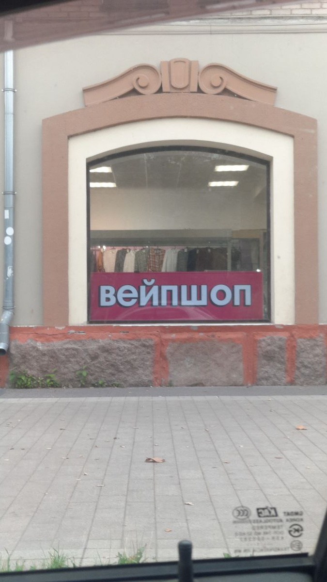 Пока вся страна отменяет вейпы, борется с пагубными привычками, на ул. Маяковского, в бывшем Гастрономе, оно же - Пятерочка, появился ВейпШоп. Надо отметить, что вывеска с большими буквами - самое то: студенты/школьники/горожане, прогуливающиеся по скверу могут наблюдать большую рекламу товара. @zhuk_city