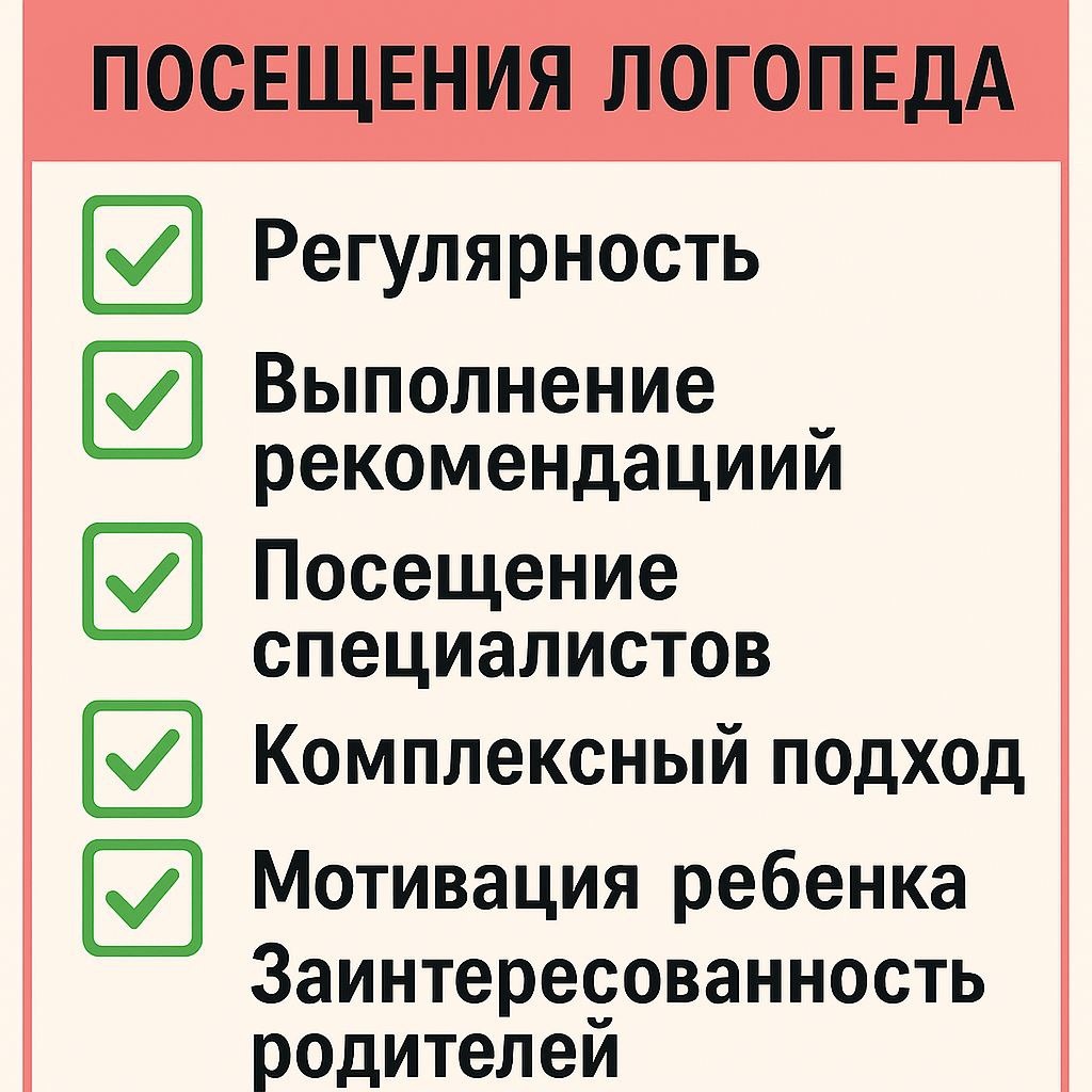 ▎Чек-лист успешного посещения логопеда 1. Регулярность – Запланированы регулярные занятия с логопедом. – Соблюдение графика посещений. 2. Выполнение рекомендаций – Выполняются домашние задания и рекомендации логопеда. – Ведение дневника (прогресса) для отслеживания успехов. - Посещение других специалистов, обследования. 3. Посещение специалистов – Консультации с другими специалистами (педиатр, психолог, нейропсихолог) при необходимости. – Участие в мультидисциплинарных встречах, если это требуется. 4. Комплексный подход – Использование различных методик и подходов (игровые методы, арт-терапия и т.д.). Если вам это рекомендуют, не игнорируйте! – Интеграция занятий логопеда с другими видами терапии или коррекции. 5. Мотивация ребенка – Поощрение и поддержка ребенка в процессе занятий. – Использование игровых и интересных форматов для повышения мотивации. 6. Заинтересованность родителей – Активное участие родителей в процессе обучения. – Обсуждение с логопедом прогресса и трудностей