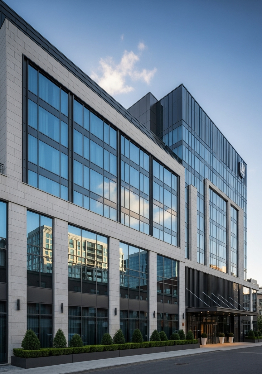 Отель бизнес-класса, расположенный в центральной части города, в пяти минутах ходьбы от деловых, транспортных и развлекательных объектов. Образует единый архитектурный комплекс с бизнес-центрами «Dastan Center» и «Dastan Optimum».