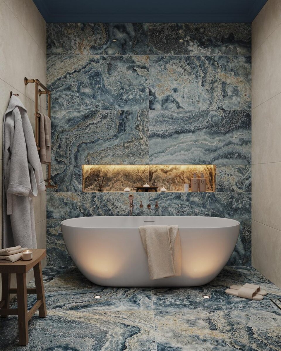 Дизайн-проект ванной комнаты выполнен в спокойной, природной палитре. Основу задали два вида керамогранита: с мягким рисунком, имитирующим движение воды, и в бежевых тонах, напоминающих натуральный песок. Такое сочетание создало лёгкий и сбалансированный интерьер, где всё выглядит гармонично и современно. Для атмосферы уюта добавлен тёплый мягкий свет, благодаря которому пространство стало более комфортным и располагающим к отдыху. ➡️ Caprigo дополнили проект, подчеркнув его стиль: аккуратные линии, качественные покрытия и продуманные детали. Наш интернет магазин👉🏻CAPRIGO