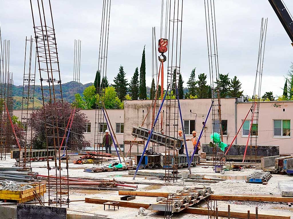 Новый блок школы №87 рассчитан на 400 учеников начальных классов. Помимо аудиторий в двухэтажном здании разместится актовый зал на 110 кресел, столовая на 200 мест, спортзал, кабинеты психолога и логопеда. Школа также будет оборудована подземным техническим этажом. Работы ведутся по национальному проекту «Молодежь и дети». В настоящее время строители приступили к монтажу монолитного каркаса будущего здания. В работах задействованы 20 специалистов и 8 единиц техники. Строительство ведётся с опережением графика, сдача проекта намечена на 2027 год, сообщает администрация Сочи со ссылкой на подрядчика. Фото: Администрация Сочи