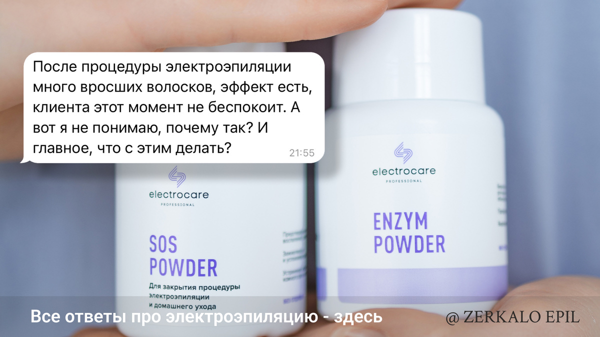 ❓Вопрос: После процедуры электроэпиляции много вросших волосков, эффект есть, клиента этот момент не беспокоит. А вот я не понимаю, почему так? И главное, что с этим делать? ❔Похожий вопрос: Интересно знать от чего же волос тогда врастает, кроме как сухой кожи и ослабление волоса, какие ещё есть моменты во избежание такой проблемы?) Рубрика “ответы на вопросы” 💬 Ответ: Волосы после электроэпиляции врастать могут, но не так массово, как при депиляции. Вообще любое вытаскивание волос из кожи может привести к их врастанию, частичному или массовому. При депиляции, например, массовое врастание распространено очень часто. Да, это частично зависит от техники мастера, но частично - он особенностей кожи человека. Это нужно учитывать. Есть люди, которым ну невозможно делать депиляция, потому что как бы мастер не старался, волосы врастают, воспаляются, и это доставляет больше мучений, чем красоты. Так себе ходить с воспаленным бикини, зато без волос. Лучше уж здоровая кожа, но с волосами. И наив