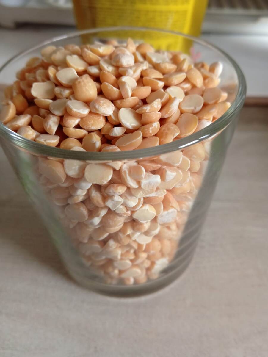 1. Промываю стакан колотого гороха обычной проточной водой и ставлю в 3-3,5 литровую кастрюлю наполовину заполненную водой на плиту на максимум. У меня это 6. Как закипит, можно уменьшить на 4 или 5. Но я оставляю обычно на максимуме, чтобы горох разварился быстрее, единственное подливаю воду когда она уменьшается.