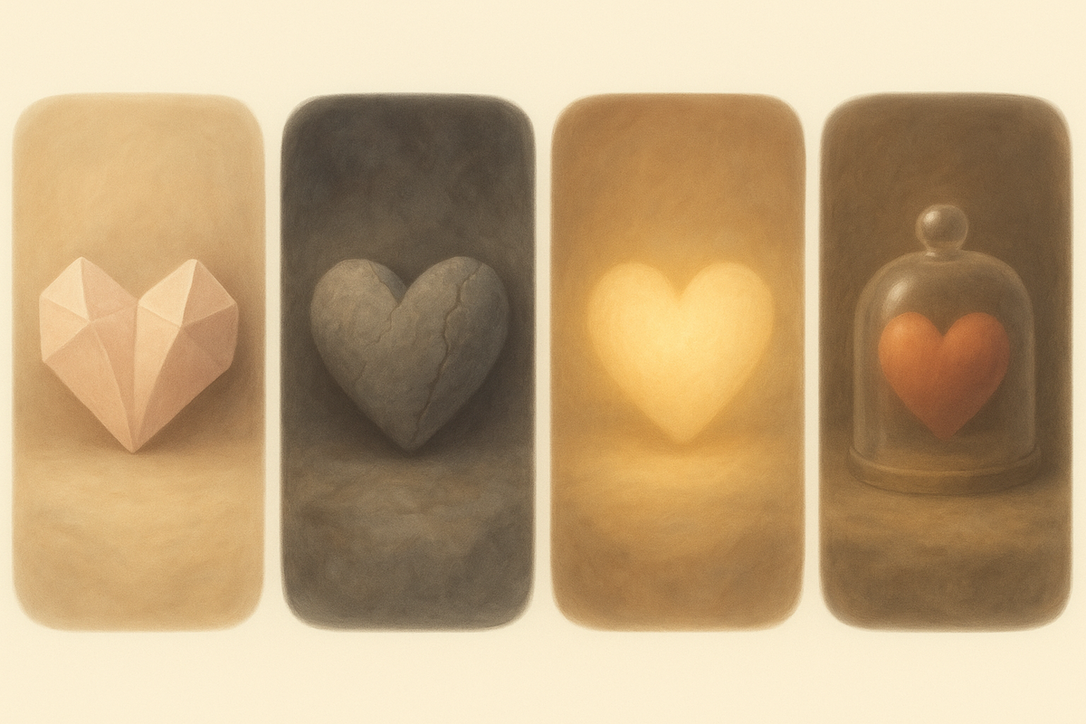 Кто-то боится снова быть отвергнутым, даже если очень хочет близости. Любовь — не только про «давать». Это про то, как мы впускаем и выдерживаем, как справляемся с уязвимостью и болью. Взгляните на эти 4 образа. Какое сердце отозвалось вам сильнее всего. Выберите — и прочтите, что это говорит о вашем внутреннем сценарии любви. Подписывайтесь, чтобы не пропускать новые психологические тесты — и вы можете поддержать мой канал донатом, если вам откликается этот формат. Это помогает создавать новые материалы🩵 Вы умеете любить красиво, деликатно, внимательно. Вы создаёте тепло через мелочи: записку, заботу, прикосновение, тонкий взгляд.