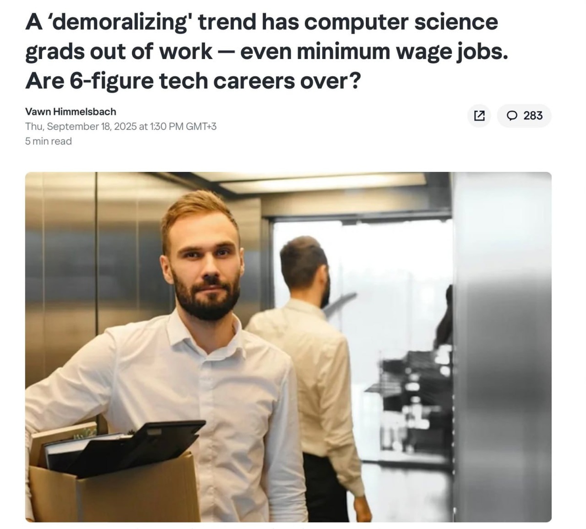 Чел после хорошего универститета в США не смог устроится на работу - послал 6000 откликов. В итоге он прошел всего 13 собеседований и не получил ни одного оффера о работе, и не смог устроиться на работу в McDonald's из-за «отсутствия опыта».В 2025 году в 199 технологических компаниях было уволено 88 964 сотрудника. Вайб-кодинг рулит? На самом деле я не понимаю таких перекосов, но это ведь упрямый факт. Русский ИТ бизнес