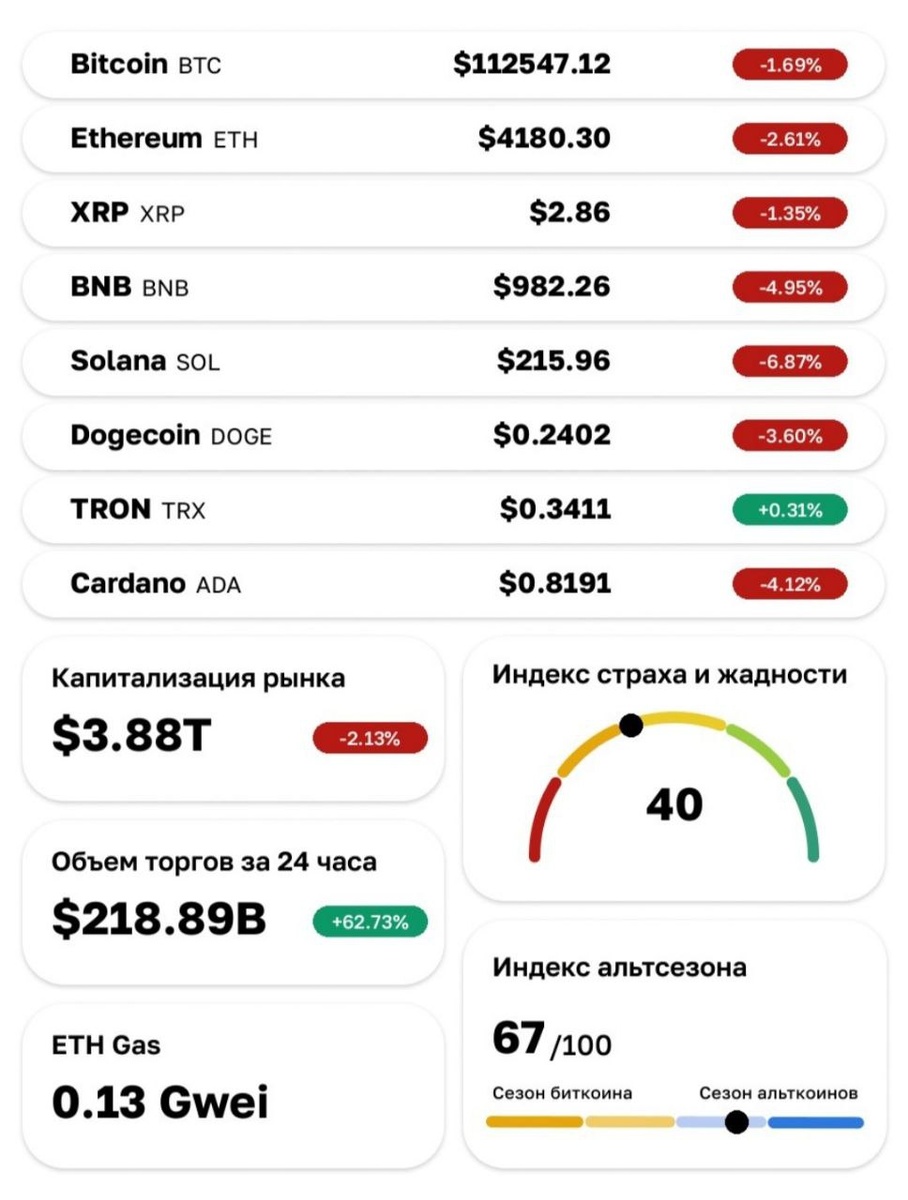 Доминация BTC : 58,53 % Индекс страха и жадности : 40 Индекс альтсезона: 67 Сумма ликвидации BTC за 24 часа : Long ликвидация : 36 млн $ Short ликвидация : 12 млн $ Long/Short держатели : Long счета BTC: 50,64 % Short счета BTC : 49,36 % Long счета альта : 59,94 % Short счета альта : 40,06 % Лонг счета по альте набирает обороты, ну а рынок не совсем откупает вчерашний слив. Дневник Криптоинвестора🚦