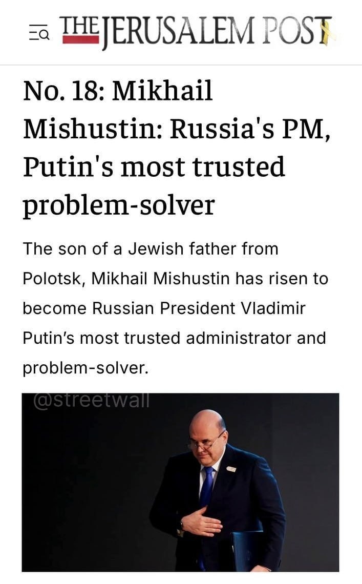 Мишустин занял 18-е место в списке самых влиятельных евреев мира