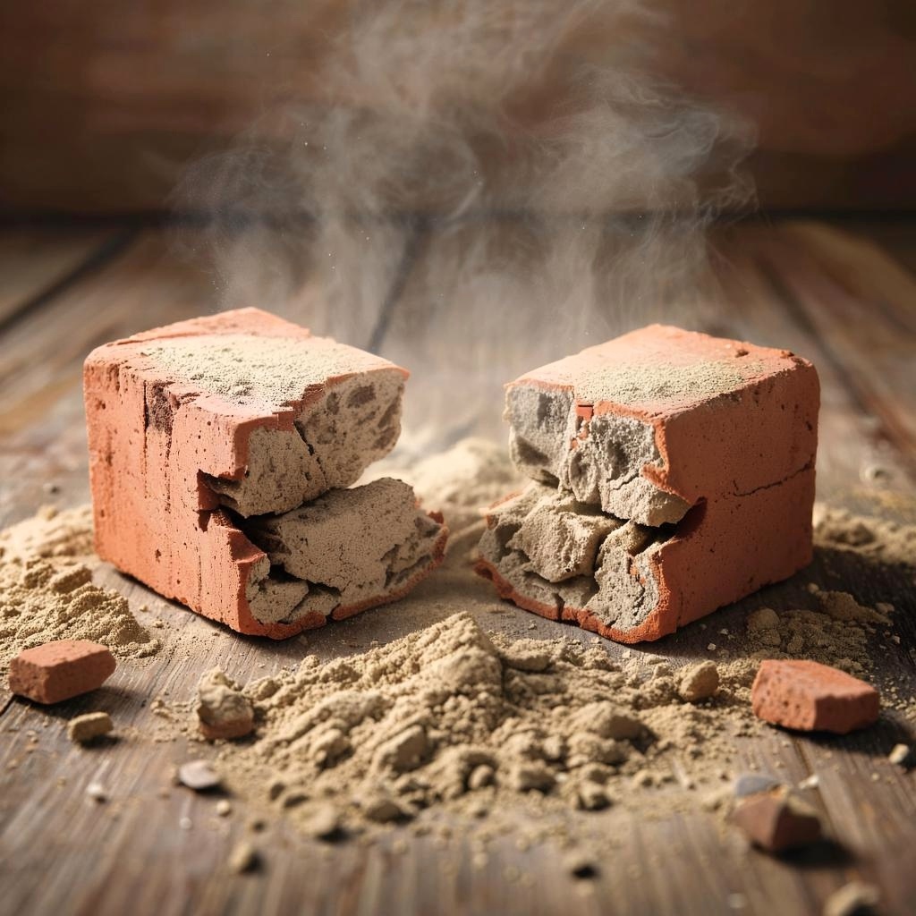 Делать это нужно исключительно под прямым углом. Если сделать удар под наклоном, то ровного разлома не будет. Такой кирпич придётся забраковать. Единственно верный вариант – лопатка "кирочки" должна в момент удара быть строго перпендикулярно "постели" (верхней плоскости) кирпича. Также можно место разлома предварительно смочить водой.