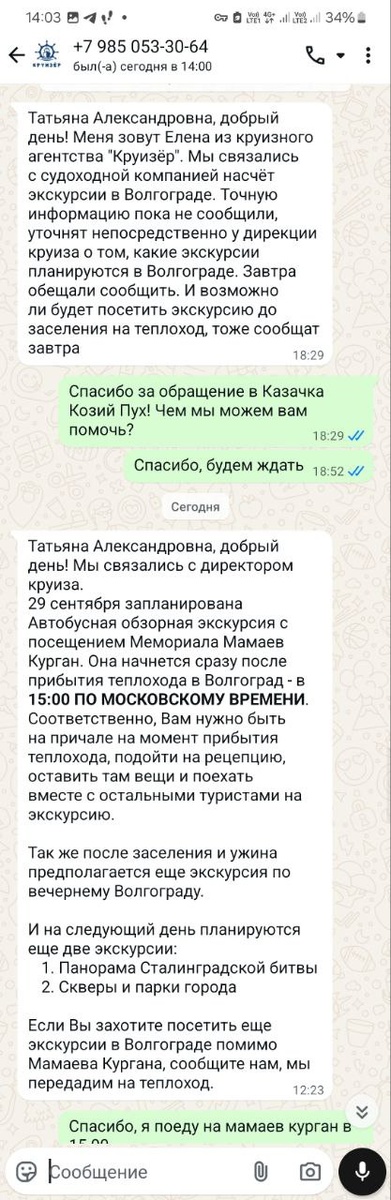 Но дело в том, что моя посадка на теплоход по графику запланирована на 18час 29 сентября и я начала подозревать, что на 4-х часовую экскурсию на Мамаев Курган я не попаду, она не может быть зппланирована на утро 30-го просто потому, что длинная