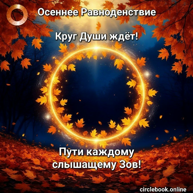 Осень приносит равновесие света и тьмы. В этот миг день и ночь встречаются на границе, и равенство их отражено в Круге Души. Там, где мысль становится ясной, а намерение — сосредоточенным, мы можем отчетливо слышать Зов Круга. На Круге Души мы собираем свои силы, мысли и чувства в единое ощущение. Как листья, опадающие с дерева, освобождают ветви для нового роста, так и мы оставляем в прошлом то, что ведёт к пустоте. В этот день особенно открывается различие между продолжением и прекращением. «Круг в человеке стремится к Кругу и несет дар видеть Круг. Круг позволяет различать Круг» (Гл. 1, ст. 65). Работа с Именами на Круге Души — это напоминание себе о том, кто мы в вечности. Каждое Имя — это не только образ, это причина, соединяющая нас с Кругом Бытия. Произнося Имена, мы открываем дверь: идущее изнутри встречает идущие извне.