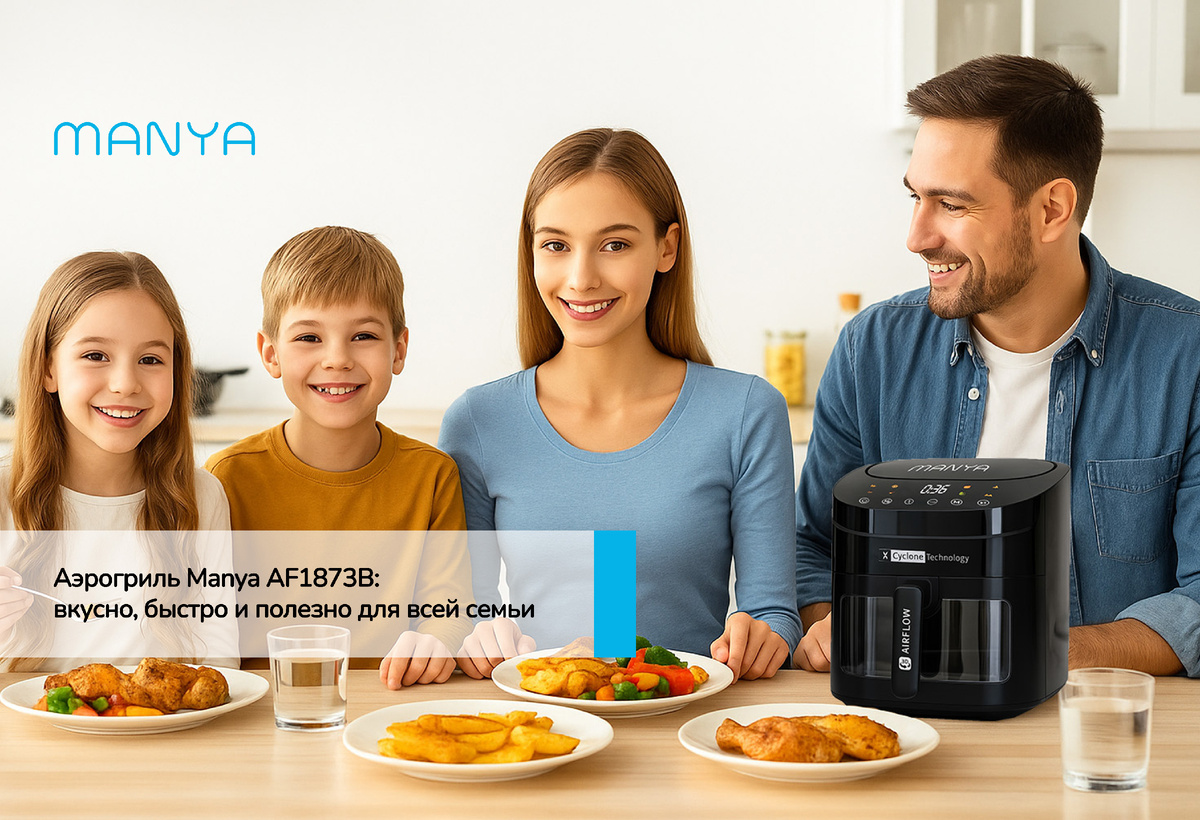 Сегодня у каждого из нас свои заботы и своя кухня. Кому-то нужно накормить детей, кто-то мечтает удивить любимого ужином, а кто-то считает калории и хочет, чтобы еда была вкусной и лёгкой. Аэрогриль Manya AF1873B создан для того, чтобы решать эти задачи без лишних хлопот.