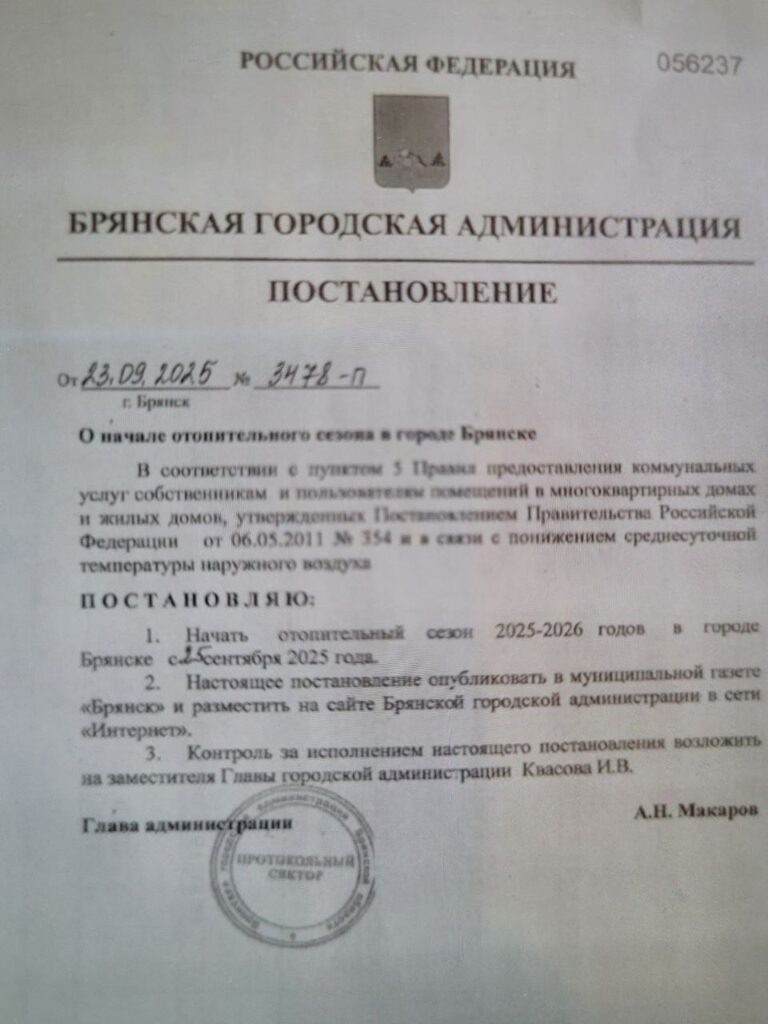 Жителям и гостям города Брянска пообещали дать тепло в квартиры, офисы и социальные учреждения – детсады, вузы и ссузы, школы, больницы и поликлиники – уже послезавтра, 25 сентября. Но сколько опять придется ждать в реальности полномасштабного начала отопительного сезона?.. Ответ на этот, пожалуй, самый главный вопрос, который встает непременно ребром каждую осень, никто точно не знает, кажется. Обычно с заявленного начала отопительного сезона до реального прихода тепла в квартиры, офисы и общественные здания проходит от нескольких дней до двух-трех недель. Иногда, чего уж там скрывать, и больше… Тем не менее соответствующее постановление о старте в Брянске отопительного сезона его мэр-пенсионер Александр Макаров уже подписал. В документе говорится, что решение “о подаче тепла в жилые дома и учреждения различных форм собственности принято в связи с понижением среднесуточной температуры наружного воздуха”. Одна уже эта обстоятельная фраза должна по идее разогнать стужу и сделать в столи