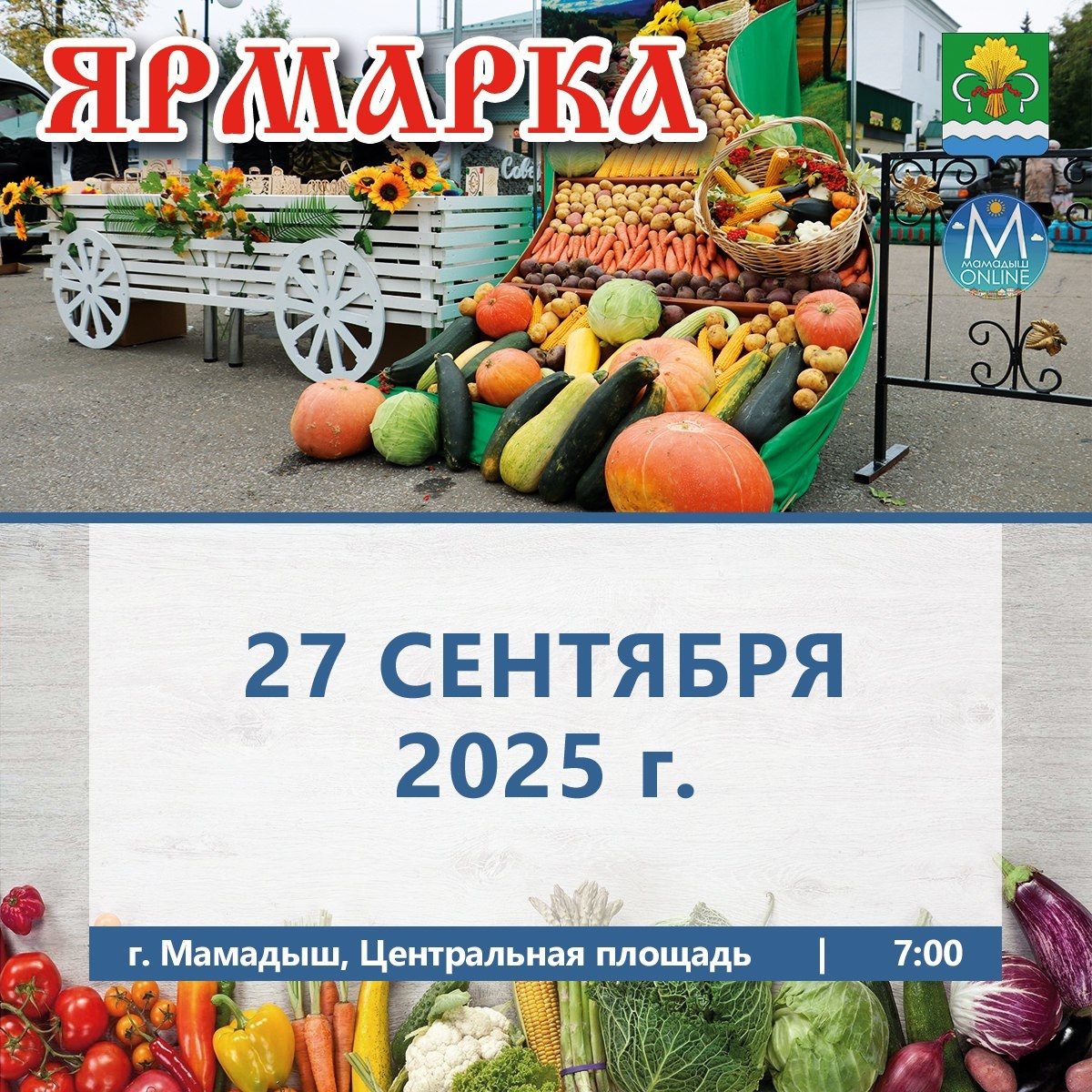 📅 27 сентября, в субботу, на центральной площади г. Мамадыша состоится сельскохозяйственная ярмарка, посвящённая Дню пожилых людей. Свою продукцию горожанам представят местные фермеры, сельскохозяйственные предприятия, организации и частные предприниматели. 📍 Начало: в 7:00 утра. Добро пожаловать! ✅ ПОДПИСАТЬСЯ l ПРИСЛАТЬ НОВОСТЬ